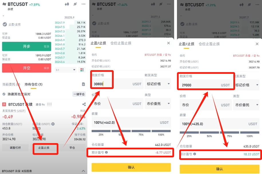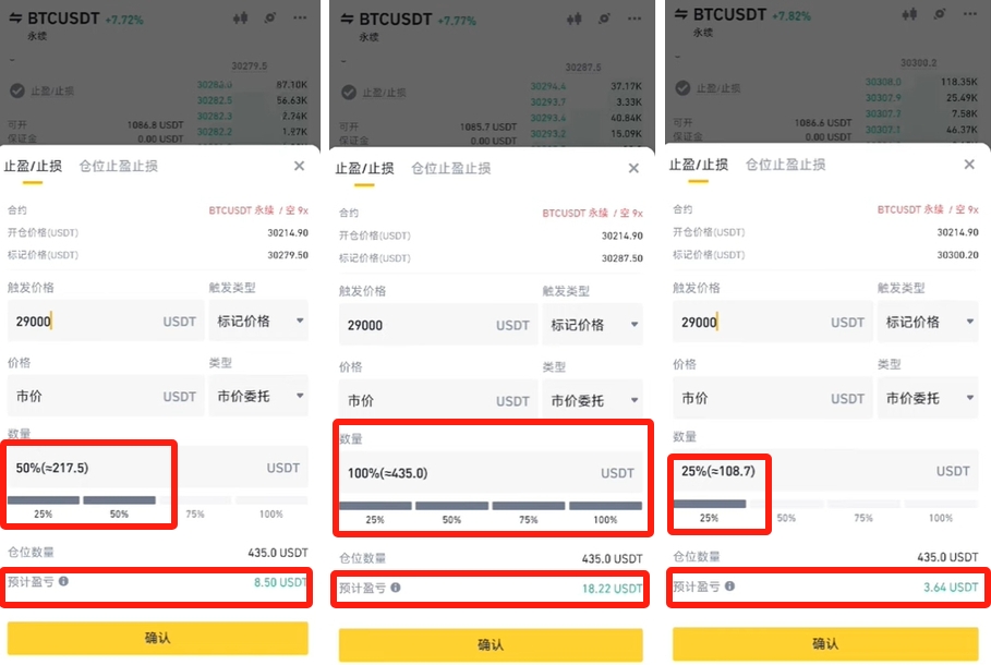 市价单会以当前市场价格立即成交,而限价止盈止损单需要设置触发价和委托价。触发价是启动订单的条件,委托价是实际成交价格。