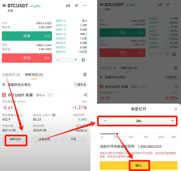 已开仓位可随时调整杠杆倍数或手动平仓。平仓时可以选择部分平仓或全部平仓,灵活控制仓位。