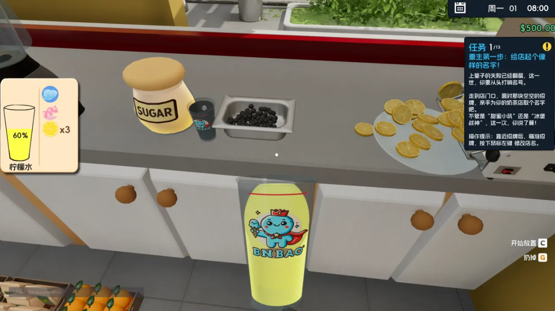 游戏设定于虚构城市“冰堡甜城”,玩家将扮演一位经历失败后重生的创业者,在事业起点重新布局。上一世因供应链管理失当、产品定位模糊及服务响应滞后,导致门店倒闭;这一世需统筹原料采购、设备维护、员工调度、菜单研发与顾客反馈闭环。从茶叶萃取温度控制、冰块克重配比、摇杯节奏到封膜密封性,每个操作节点均影响最终饮品评分——系统实时反馈制作完成状态与顾客满意度数据。