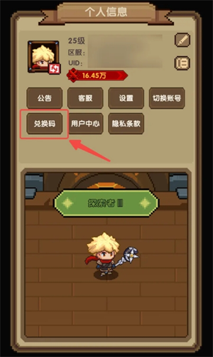 点击左上角【头像】,进入【个人信息】页,点击下方【兑换码】按钮,即可使用兑换码,无需区分大小写