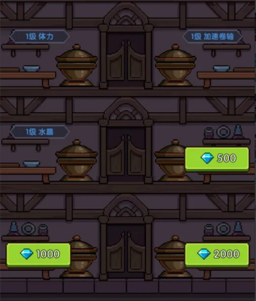 小提示:体力>水晶>加速卷轴>金币(前期开荒,体力是永远的王道)
