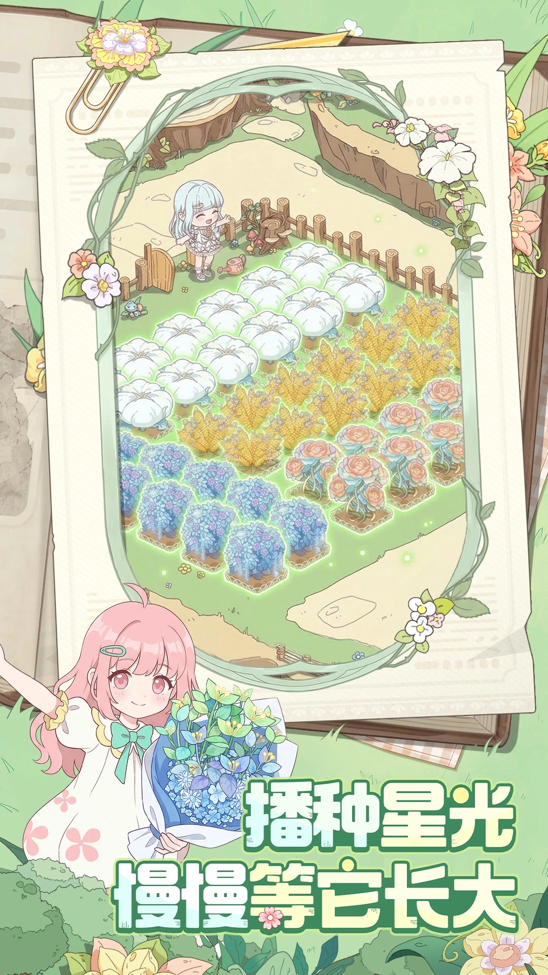 作为一款以“种出童话”为理念的作品,《童话师》将模拟经营深度融入奇幻世界观。基础玩法围绕“幻想植物种植”展开,区别于传统农耕题材,游戏中可培育蓝蝶花、软软云、心露草等十余种原创幻想植株。每种植物均配备独立生长动画与专属开花特效,成熟后产出的“花材”并非单纯资源,而是驱动后续系统的关键原料。