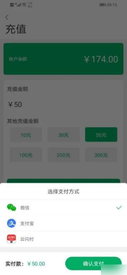3.点击“我的账户”页面的“立即充值”,进入“充值”页面,输入充值金额(*小充值金额为1元),或选择其他固定充值金额,并选择支付方式(支持微信、支付宝、云闪付充值),点击“确认支付”。