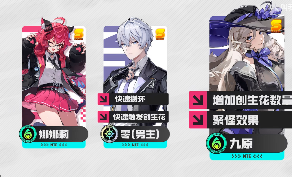 推荐标准配置为:主角+九原+早雾。主角作为全玩家基础角色,具备稳定的技能衔接节奏与「会能」能量补充机制,可在娜娜莉技能真空期维持创生花生成节奏,保障输出连贯性;其技能释放后可即时触发额外创生花,构成首轮爆发铺垫。