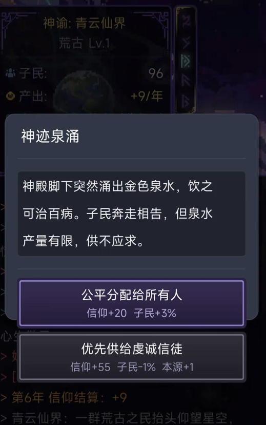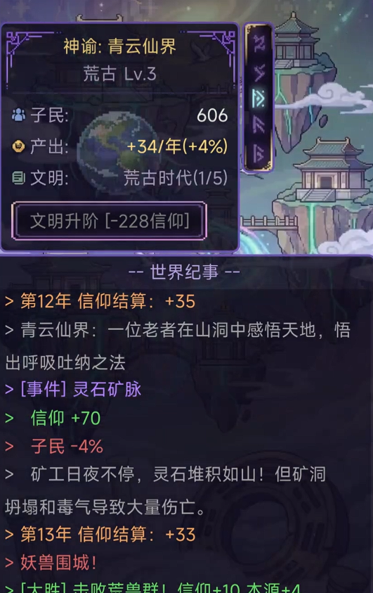 游戏核心围绕“神格养成”与“万界治理”双主线展开。玩家可通过持续积累信仰之力,逐步解锁天地权柄——既可调控四季更迭、重塑山川地貌,亦能制定律法、册封神职、统御子民。每一次关键抉择都将触发差异化奇遇事件,带来稀有资源、特殊天赋或隐藏支线,确保成长路径千人千面,拒绝模板化体验。