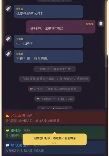 视觉呈现摒弃甜腻滤镜,采用具有张力的漫画式构图与高对比度配色,精准映射Z世代日常语境。文本创作兼顾批判性与人文温度:一方面解构相亲角话术、婚恋KPI化等现实荒诞,另一方面细腻刻画孤独感背后未被言说的联结渴望。玩家在推动关系演进过程中,获得的不仅是剧情推进满足感,更是对亲密关系本质的理解深化。