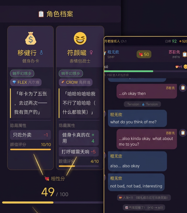 每位可匹配角色均具备完整人格图谱:从高压环境下的企业中层,到长期居家的生活观察者,其行为模式、语言偏好与情感触发点皆经过心理学维度设计。玩家需依据性格画像定制沟通路径,例如对回避型人格侧重建立安全距离,对高焦虑型则强化正向反馈节奏。这种将认知行为逻辑融入玩法的设计,使每一次交互都成为影响结局走向的关键支点。
