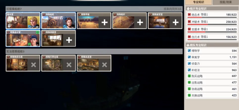 游戏内船员技能分为两大基础类型:主动型技术技能与被动型专业知识。前者需手动释放,具备明确战术用途;后者则持续生效,主要为船只提供属性增益。每项主动技能最多可升级4次,每次升级均会强化核心效果数值。值得注意的是,同一艘船上若搭载多名具备相同技术类型的同伴,该技术的总威力将产生叠加效应。因此,在组建船队时,应避免过度堆叠同质化技能,而需注重功能互补。当前技能体系划分为三大类:决斗技术、海战技术与提督命令。根据实战反馈与机制权重,推荐优先投入资源提升决斗技术。