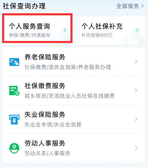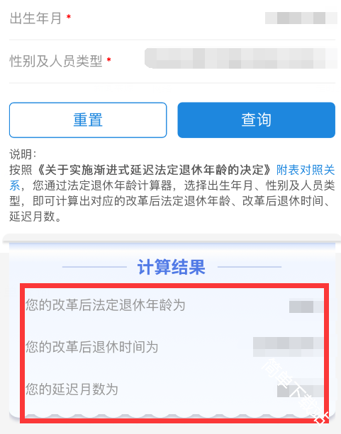 6、返回回到个人服务查询界面,点击下方的法定退休年龄计算器
