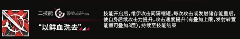 3.二技能「以鲜血洗去」是手动开启,持续25秒。每次攻击或发射能量之后,后续的攻击力和攻速都会提升,有叠加上限,发射转置能量,可以叠3层。推测每次叠加是攻击加15、攻速加15,最多叠9层。叠满一个转置装置,大概能打到1.2万左右的伤害,法伤dot,还会额外跑6秒。技能期间理论上,可以攒20个球,提前攒好3个转置装置进场,大约能打到10万伤害。演示里打25000血量、20法抗,加一阶段额外50法抗的杰斯顿,3个转置装置,直接带走了接近三分之一血,数据挺能说明问题的。