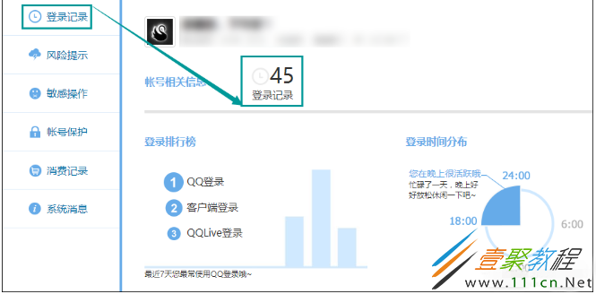 4、在这里可以查看近期的QQ登录记录,包括时间、ip地址、地点、登录业务等,假如出现异常的登录情况,那有可能出现被盗号的风险。