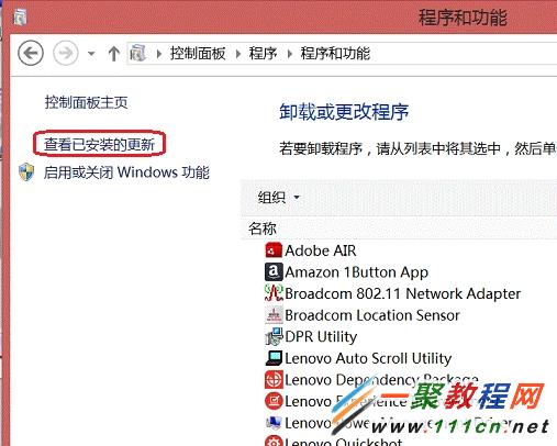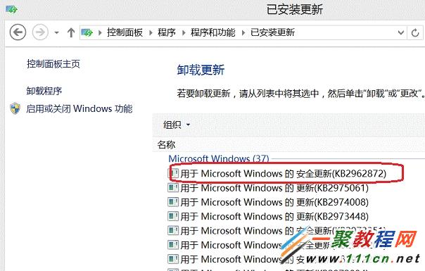 然后在打开界面我们们点击左边“查看已安装的更新”,然后我们看看里面有没有KB2961851更新,把它卸载,重新启动计算机即可。