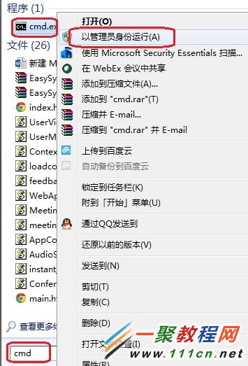 我们在开始菜单搜索“cmd”然后我们右击cmd,以管理员身份运行,之后我们再输入 sfc/scannow,按回车键,扫描并修复系统文件。