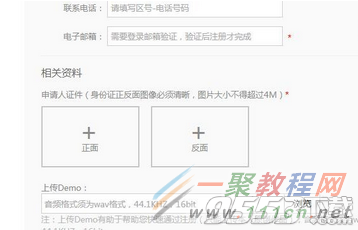 3、小编就拿注册独立音乐人为例,需要填写的信息,我就拿最重要的部分截图,身份证正反面照,上面还要填写艺名,好像还需上次一首歌曲,这个具体什么样的你们自己去测试。