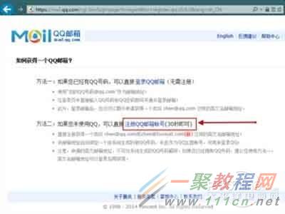 二、然后出现二种方法问你,如何获得一个QQ邮箱。网站上给出了两种方法:
