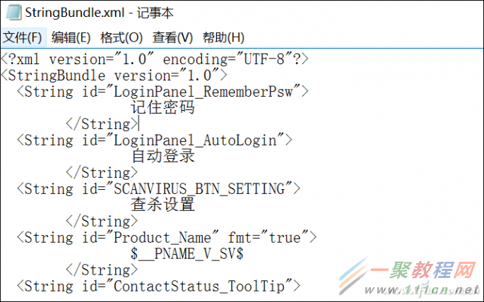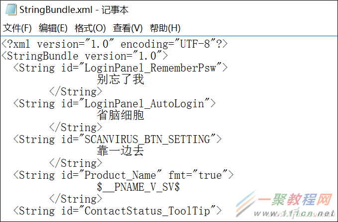 首先,进入QQ的安装目录,xx(安装路径)TencentQQI18N2052这个文件夹。用记事本打开其中名为“StringBundle.xml”的文件。
