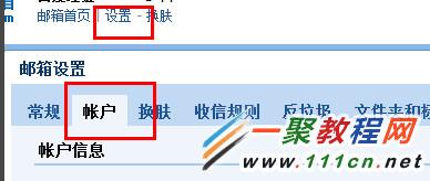 1、我们先打开并登录QQ邮箱之后,点击QQ邮箱界面中的""设置"然后我们再点击切换到 "账户选项卡,如图所示: