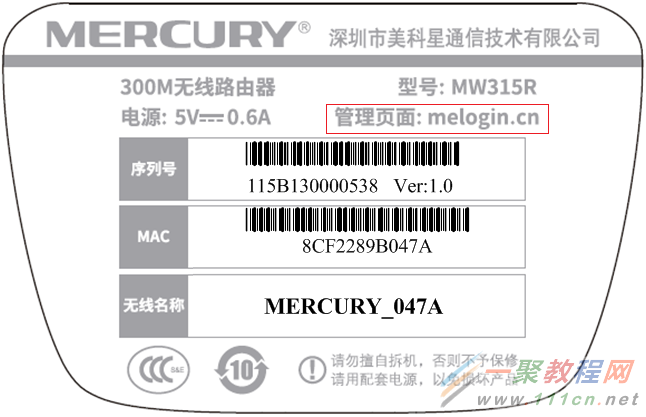 具体登录地址请查看路由器底部的标贴纸,如下图: