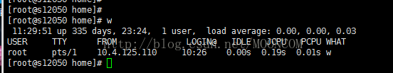 我本地确定已经关闭了openam_jxedu用户的连接。因为可能是其他主机在连接openam_jxedu,于是,我在root用户下,使用 w 指令,看一下当前Linux系统的用户连接情况,截图如下。