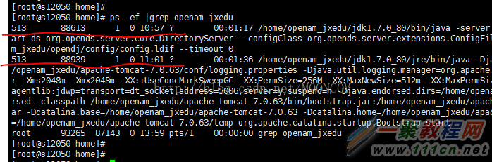 解决方法:我在root用户下,输入指令ps -ef |grep openam_jxedu,此时指令窗口显示如下所示: