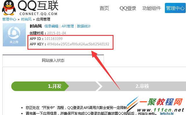 当然,到这一步,还没有结束,这时,只能通过你刚登录的帐号QQ才能登录你的网站,要想其它人的QQ都可以登录你的网站,你还要提交申核,只有申核通过了,才能任意QQ登录。你可以按照QQ互联里的介绍,一步一步地来实现。这里就不多说了。